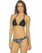 Description: Triangle bikini top with removable soft pads and detail at the center and atin panty.