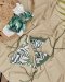 Description: Triangle top with removable soft cups. latin tie side bottom.