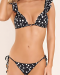 Description: REVERSIBLE bikini. Reverses to a Maajical surprise print. Sliding triangle top with removable soft cups, less coverage, adjustable straps, tie back, ring detail, special lace toecaps. Tie side intermedium bottom with elastic band detail.
