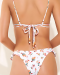 Description: Triangle top with removable soft cups and ruffles detail, adjustable straps, tie back, special lace toecaps. Cheeky cut bottom with ruffle detail.