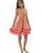 Description: Kids short dress. V neck, adjustable straps, empire waist, smocked back, front knot, flounce hem, relaxed fit, soft lightweight fabric.